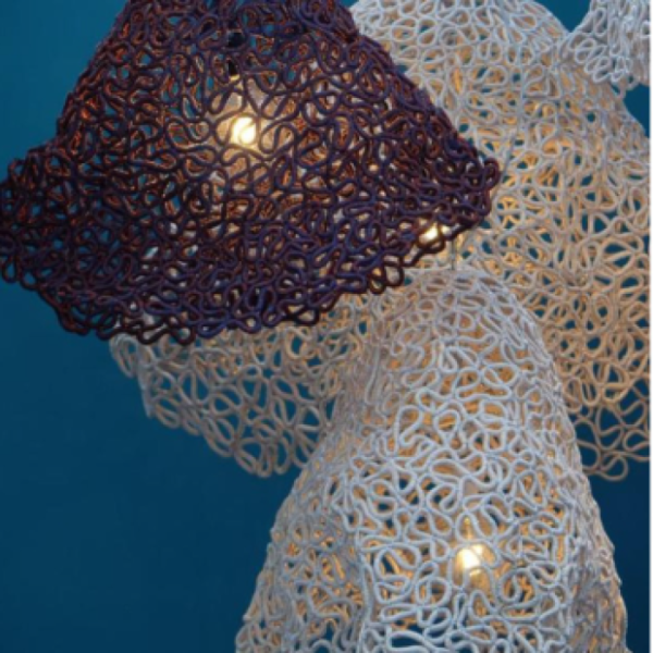Illuminate your space with our handcrafted brain coral hanging lamps in tapestry forms. Inspired by underwater coral reefs, they are made from finely woven abaca fibers wrapped in silver and copper wires and are available in assorted colors and sizes.